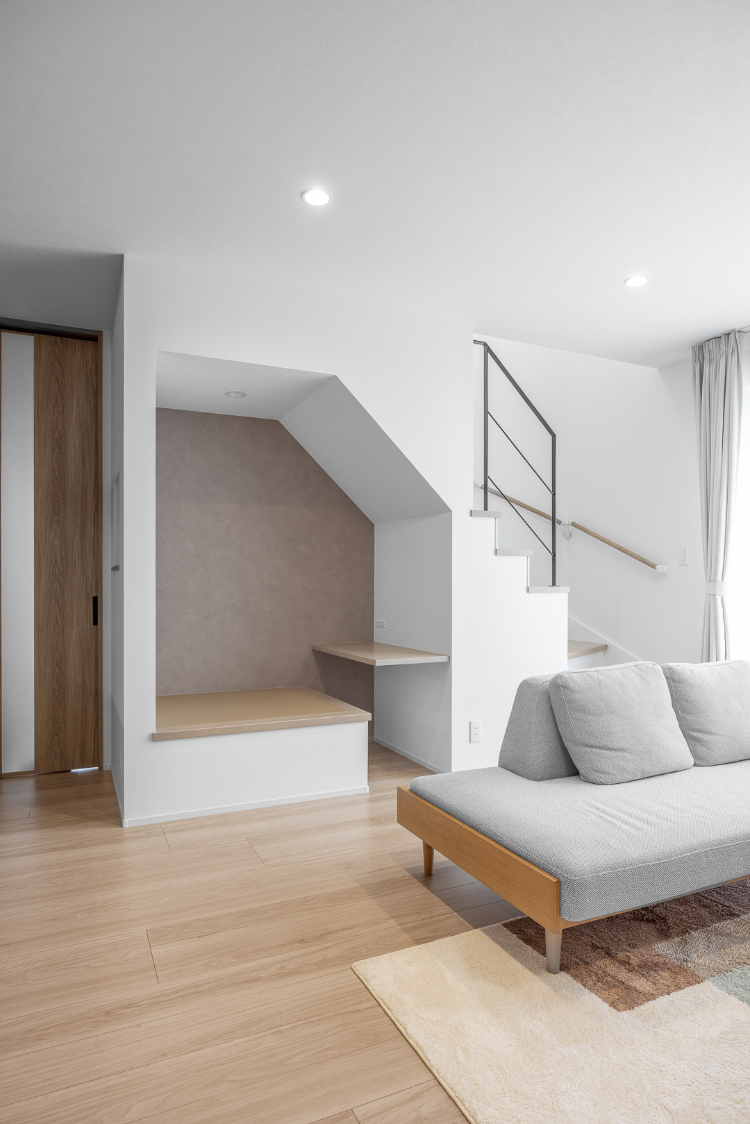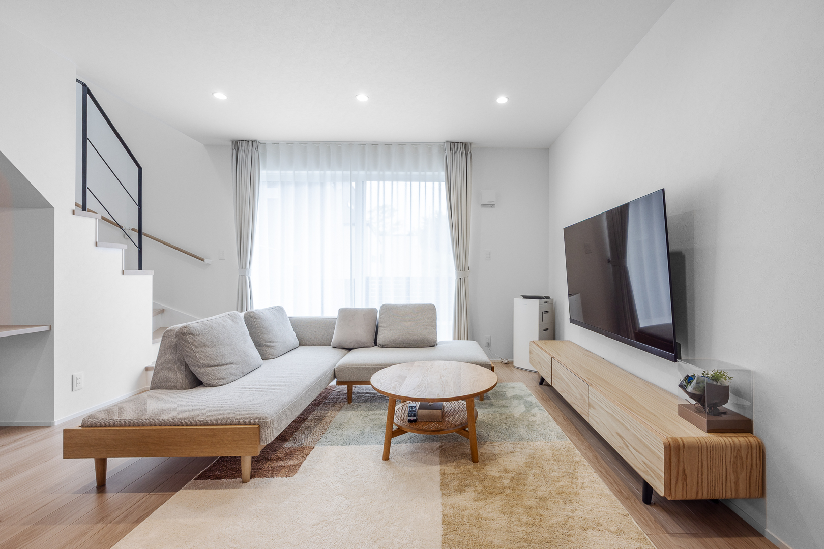 大きな窓から光が差し込み、家族の時間を明るく包み込むLDK。家族の会話が自然に広がる一体感ある間取りです。