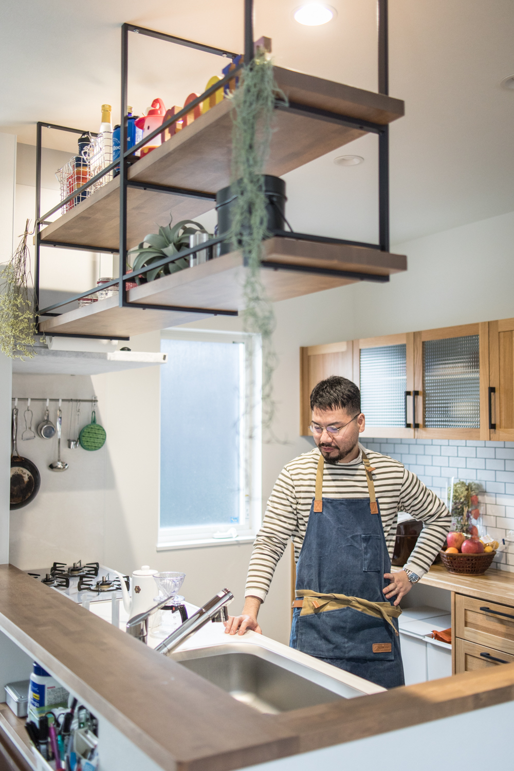 毎日の食事作りはご主人の担当。調理用品や調味料など厳選しながら料理を楽しんでいる。