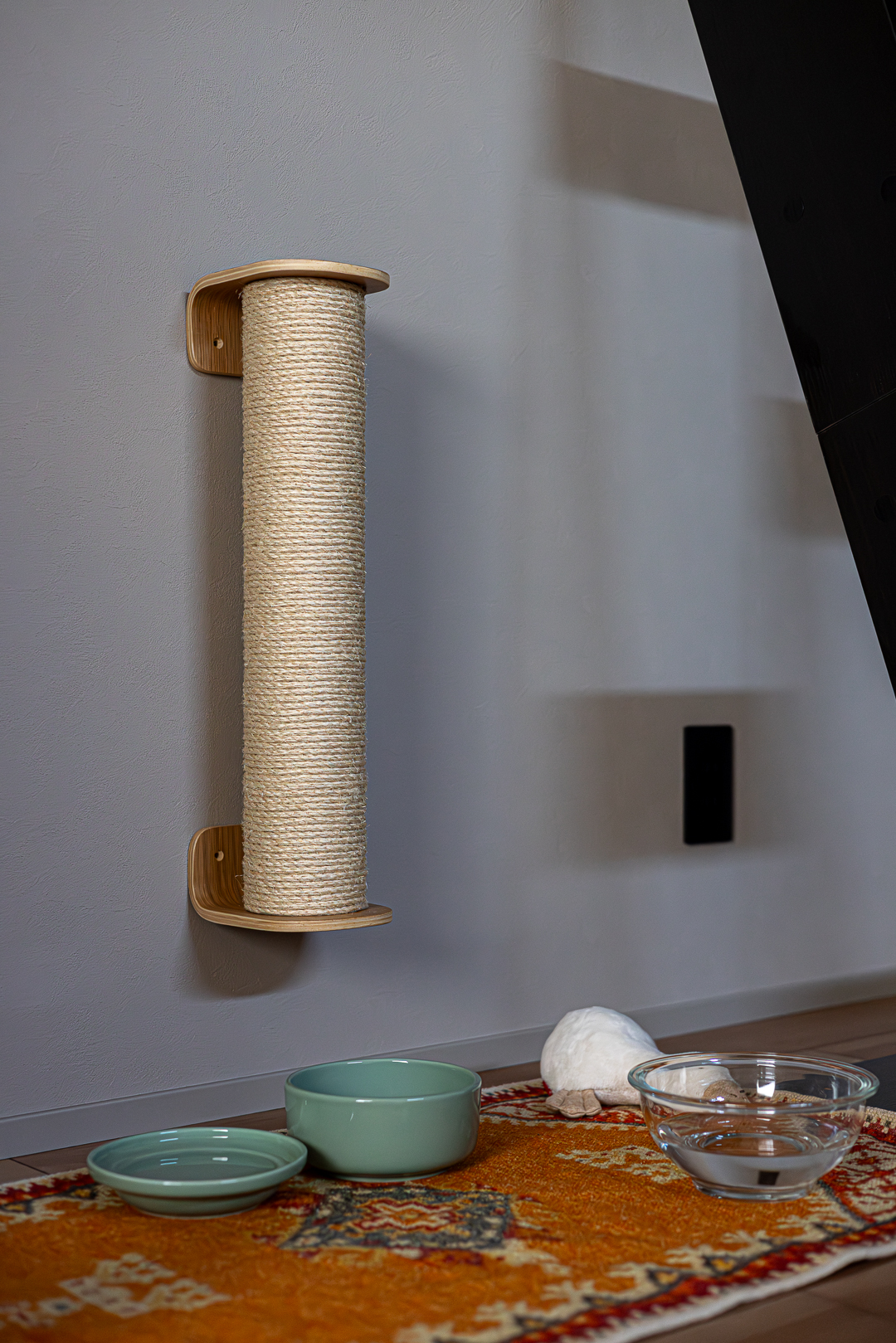 爪とぎは木製のフレームとナチュラルなロープで、空間に馴染み猫の爪研ぎ欲求を満たしながらインテリアの一部として機能している。