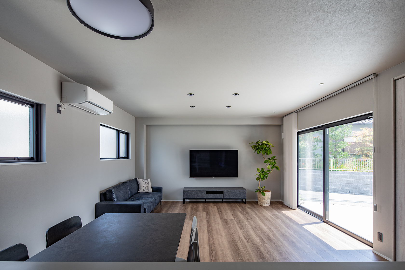 リビングの窓にはバーチカルブラインドを設置し、日光や外からの視線を遮る。